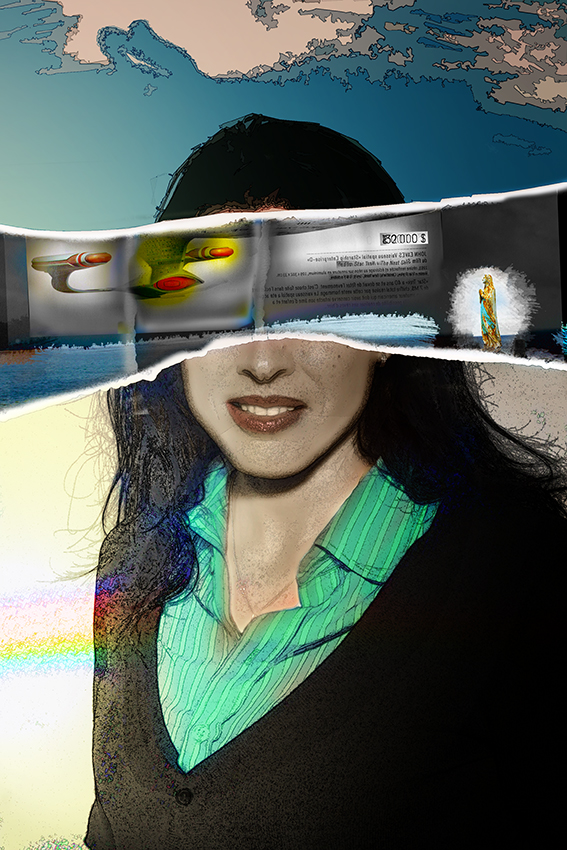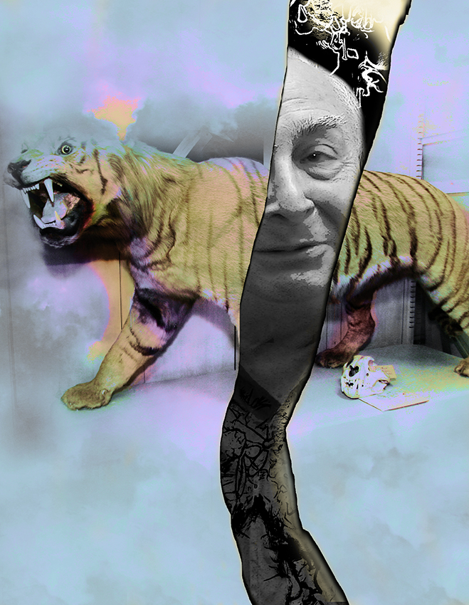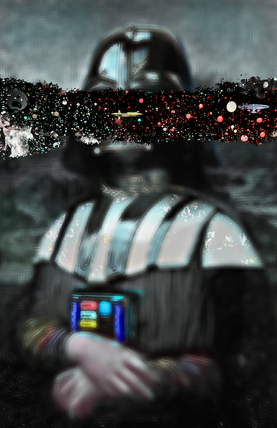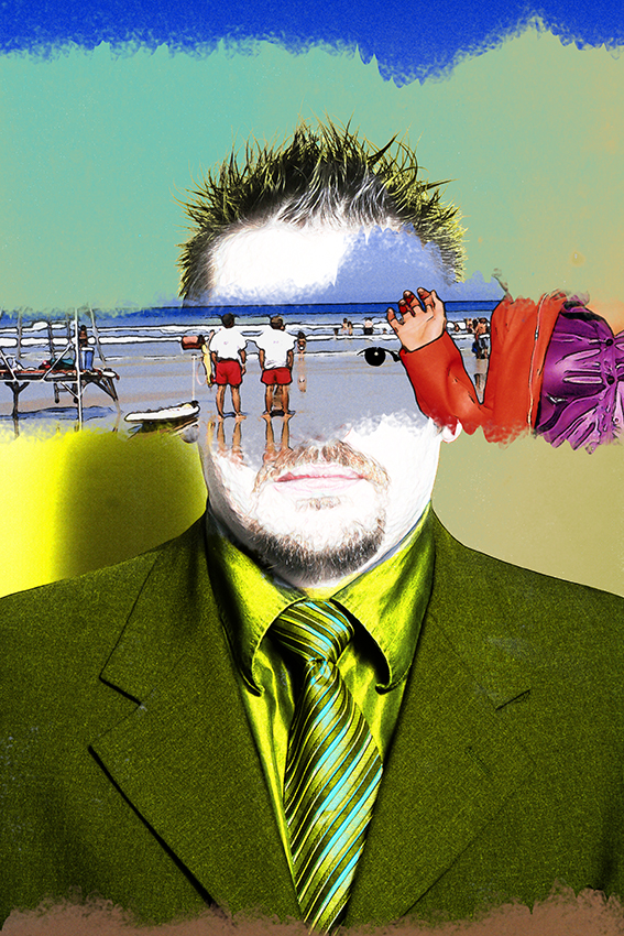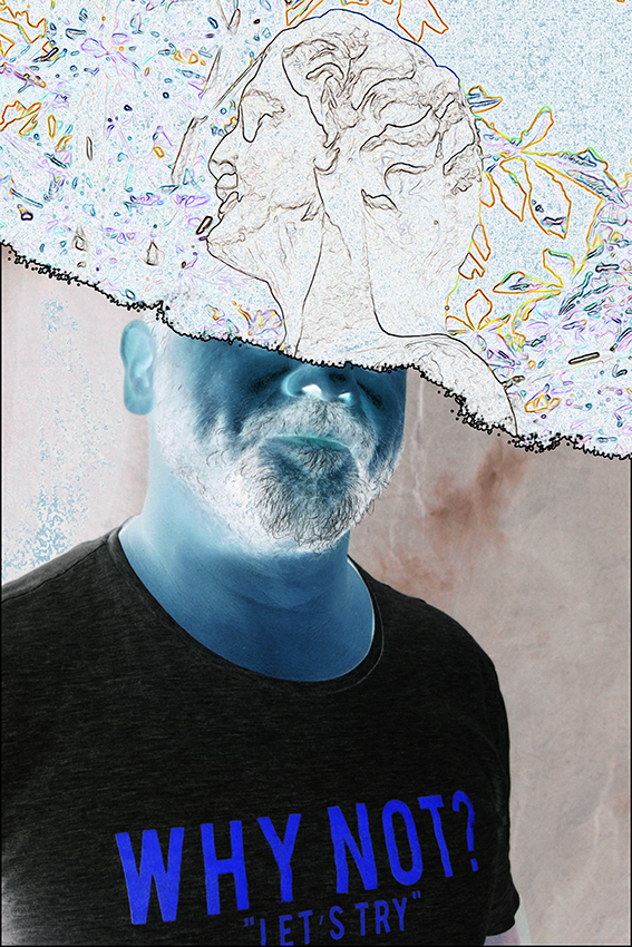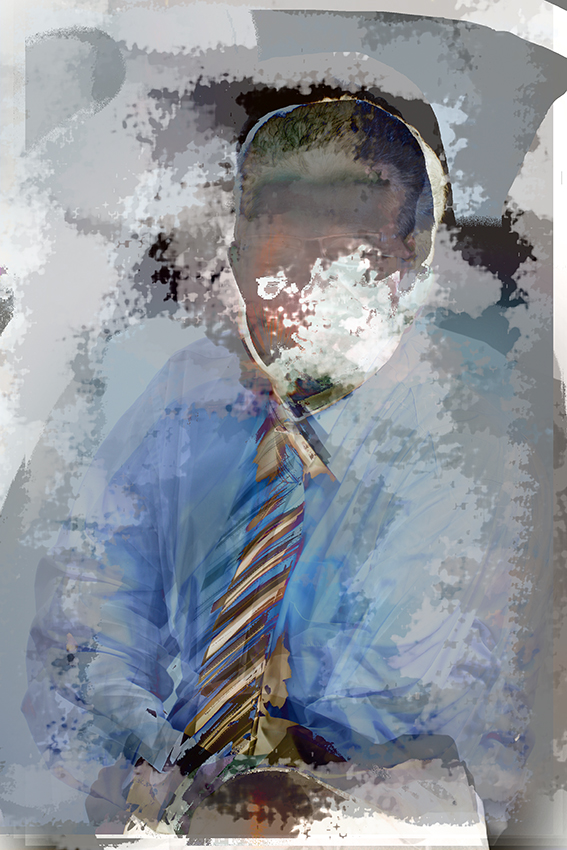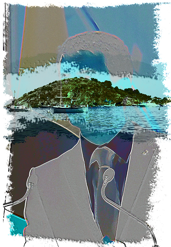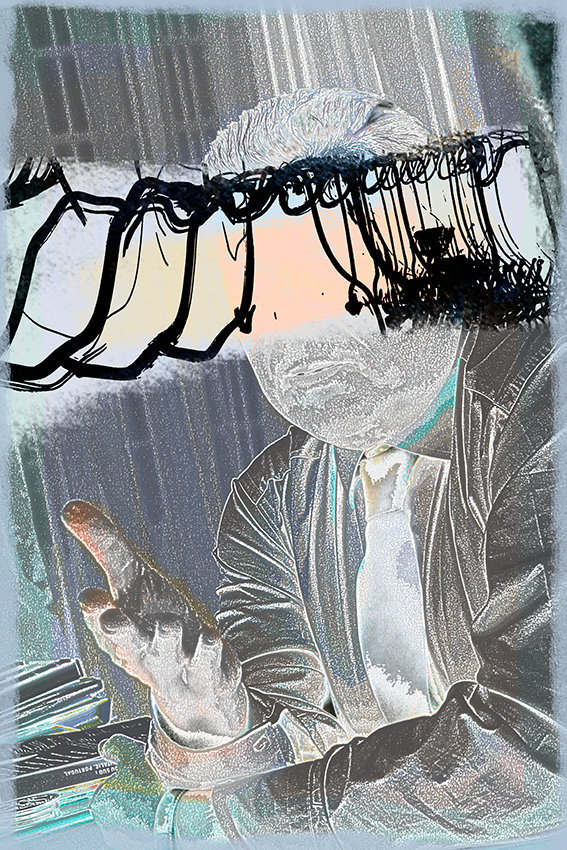 J’ai créé cette série pendant le dernier confinement, à partir d’une collection de portraits que je ne pouvais utiliser dans ce cadre artistique… d’où la nécessité de masquer les visages. Vous pouvez y retrouver aisément jean-Paul Fournier, maire de Nîmes, Franck Proust, Président de Nîmes Métropole, l’ancien maire de Montpellier Philippe Saurel, Roselyne Bachelot, Manuel Valls, Claude Chabrol, Dark Vador ou encore Gilbert Collard, et moi-même. Ces assemblages/collages trottaient dans ma tête depuis un certain temps, d’ailleurs, j’ai été ravi d’arriver à mes fins…sauf demande expresse, ces pièces ne sont pas en vente.